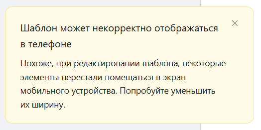 Если в вашем письме возникнут проблемы с адаптивностью, например, контент будет выходить за пределы экрана или некорректно масштабироваться, редактор немедленно предупредит вас об этом. Вы увидите специальное уведомление, которое позволит вам быстро обнаружить и исправить ошибку, гарантируя, что ваша рассылка будет выглядеть идеально на любом устройстве.